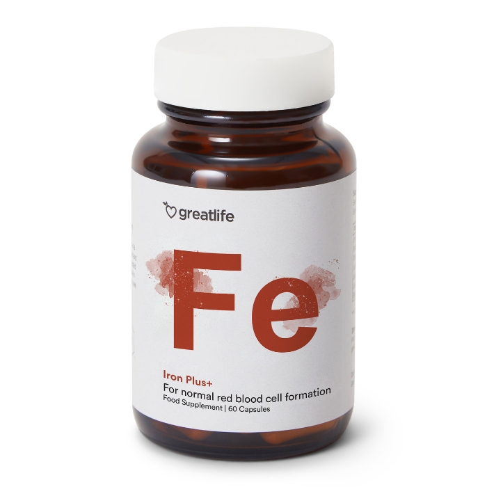 Iron Plus+ from Greatlife is a top-quality iron supplement designed to support healthy blood formation, oxygen transport, and energy production. Iron Plus+ contains iron in bisglycinate form for high absorption and gentle tolerance on the stomach, combined with vitamin C, B6, folate, and vitamin B12. The formula is also enriched with copper to support normal iron metabolism. Iron Plus+ is free from unnecessary additives and artificial ingredients.